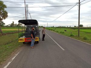 PS. Ka SPKT Aipda Iswadi beserta anggota Bripka Syamsuddin dengan menggunakan kendaraan dinas melakukan patroli dengan mendatangi tempat-tempat rawan aksi balap liar.