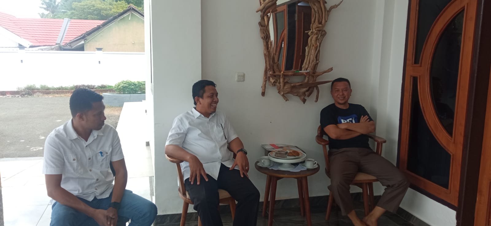 Senyum sembringah dan perbincangan dialogis antara bupati dengan komisioner Komisi Pemilihan Umum (KPU) menambah hangat suasana area teras depan rujab bupati.