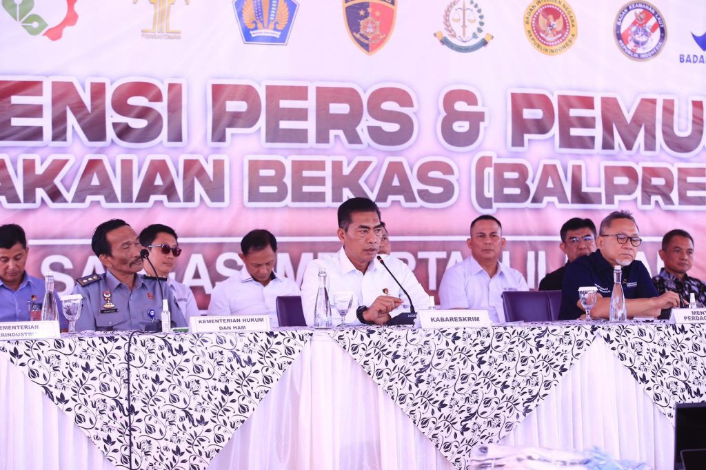 Di tempat yang sama, Menteri Pedagangan Zulkifli Hasan mengatakan Bareskrim Polri telah melakukan penindakan terhadap pakaian bekas sebanyak 1.883 bal, Ditjen Bea dan Cukai melalui Kantor Pelayanan Beacukai Tanjungpriok mengamankan balpres sebanyak 3.044 bal, Kantor Pengawasawan Beacukai Cikarang mengamankan 696 produk jadi berupa karpet, 6.578 unit elektronik berupa laptop, handphone, mesin fotokopi dan 5.896 pieces pakaian jadi serta aksesoris. Sementara Kementerian Perdagangan menyita 20 ribu kain rol yang tidak dilengkapi perizinan impor.