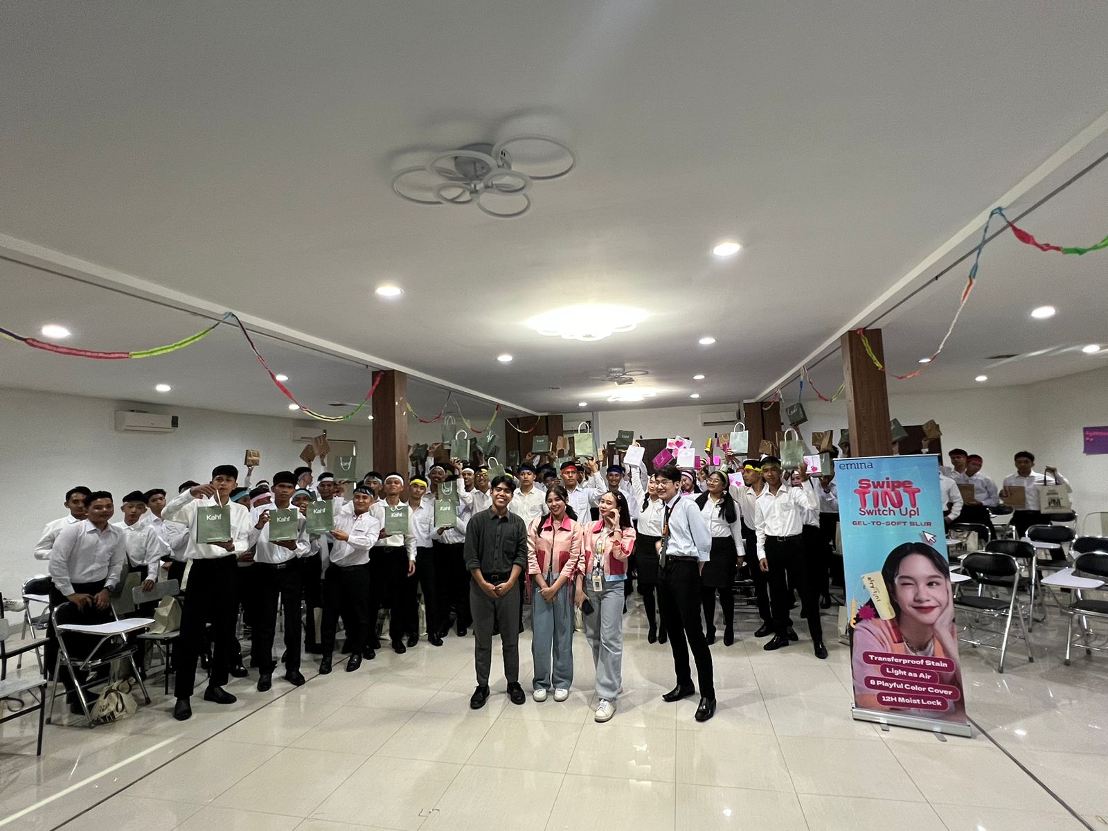 “Para peserta karantina mendapatkan godie bag dan juga spesial diskon dari Emina dan Kahf, bekerjasama dengan Toko Ilmiah Cosmetics”, ujar Promotor Emina.
