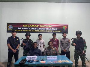 Dipimpin Wadan Satgas Kapten Inf Agus Dwi Prabowo Rabu, 03 Agustus 2022 pukul 01.20 Wib dilakukan penyerahan 2 (dua) orang tersangka beserta barang bukti dari Satgas Pamtas Yonif 645/Gty kepada Polsek Jagoi Babang.