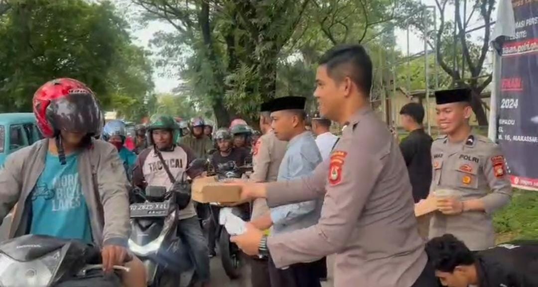 Kabagwatpers Biro SDM Polda Sulsel AKBP Eko Suroso saat ditemui Jumat (15/3/2024) mengatakan, pembagian takjil gratis sebagai wujud kepedulian keluarga besar Polda Sulsel kepada masyarakat, khususnya pengguna jalan yang melaksanakan ibadah puasa di bulan Ramadhan.