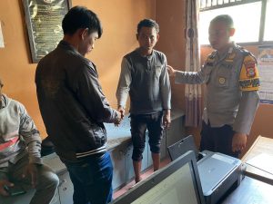 Bhabinkamtibmas Bripka Khusnul Akib membantu warga menyelesaikan masalah kesalah pahaman antara Basir (20) dengan Saparuddin (22) warga binaannya dengan mengundang kedua belah pihak untuk dipertemukan di Mapolsek Galut. Rabu, 6/7/2022