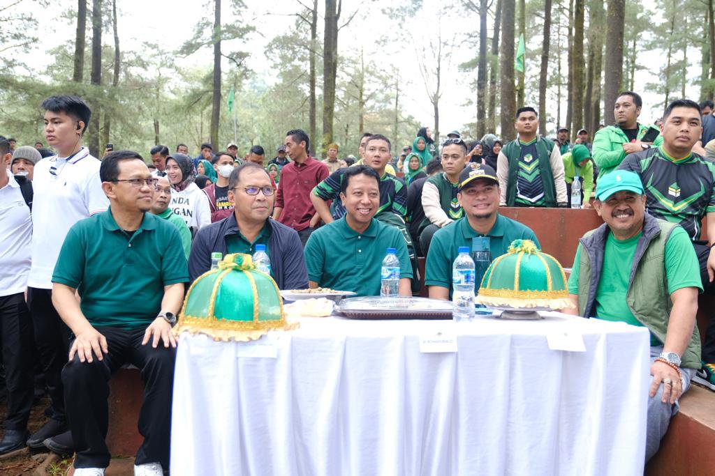 GOWA–Bupati Gowa, Adnan Purichta Ichsan menghadiri Jalan Sehat dalam rangka Hari Lahir Partai Persatuan Pembangunan (PPP) Ke-50 Tahun yang berlangsung di Malino, Kecamatan Tinggimoncong, Kabupaten Gowa, Minggu (12/2).