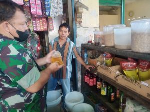 ” Secara Teknis, Babinsa di lapangan menanyakan serta mengecek langsung berbagai harga kebutuhan pokok terutama minyak goreng curah, ke kios-kios di seputaran pasar untuk mengetahui secara langsung dari para pedagang, distributor maupun para konsumen, ” tukas Danramil 07 Gatak Kapten Inf Sutrisno.