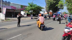 Pada kesempatan itu pula, selain sasaran untuk menciptakan arus lalu lintas yang lancar, personel yang kita tugaskan juga melaksanakan himbauan kepada masyarakat untuk tetap mematuhi peraturan berkendara baik roda 2 maupun rodan 4 sekaligus menghimbau agar masyarakat tetap menggunakan masker bila beraktifitas di luar rumah, tutup Kasat
