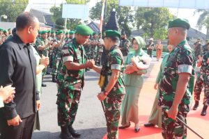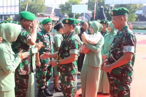 fajarinfo@online.com,” Blitar – Dandim 0808/Blitar Letkol Inf Didin Nasruddin Darsono di dampingi Ibu Ketua Persit KCK Cabang XXII Kodim 0808 Ny. Trinil Didin Nasruddin, menyambut kedatangan Danrem 081/DSJ Kolonel Inf Deni Rejeki bersama Ibu Ketua Persit KCK Koorcab Rem 081 Ny. Elsye Deni Rejeki di Kodim 0808, Jl. Ahmad Yani No. 06 Kota Blitar, Selasa (7/6/2022).