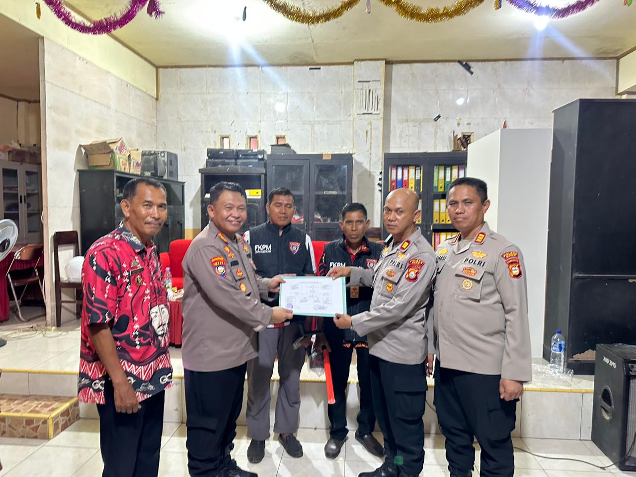 Dirbinmas mengatakan jika kedatangannya selain melaksanan evaluasi penggunaan sistem pelaporan, juga bermaksud memberikan sarana kontak berupa rompi FKPM dan alat alat patroli Sat Kamling.