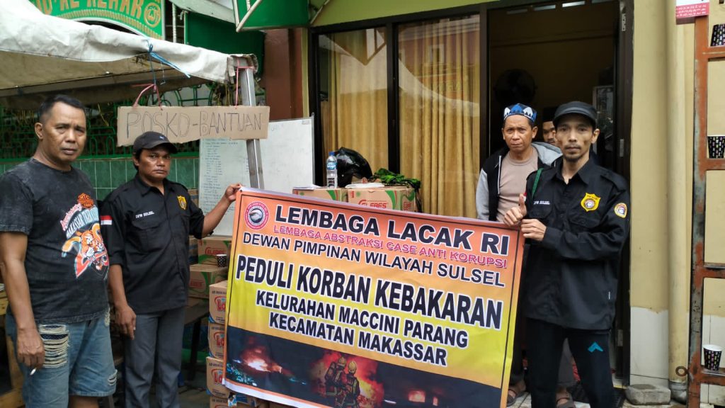 Hal ini dilakukan atas kerjasama anggota DPW LACAK RI SULSEL untuk menggalang dana bantuan korban kebakaran berupa ,beras ,mie instan agar dapat memberikan manfaat bagi masyarakat korban kebakaran Maccini kota Makassar Sulawesi Selatan Indonesia timur