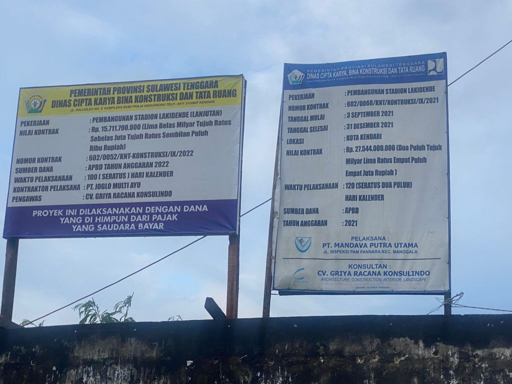 Dewan Pimpinan Wilayah (DPW) Lumbung Informasi Rakyat (LIRA) Sulawesi Tenggara(Sultra) telah melakukan investigasi dan klarifikasi di berbagai pihak terkait pembangunan Tribun Stadion Lakidende yang mana Anggaran tersebut di alokasikan di Dinas Cipta Karya dan Tata Ruang Provinsi Sulawesi Tenggara dan telah di anggarkan dua tahun berturut turut yaitu tahun 2021 sebesar Rp 27 Millyar dan tahun 2022 sebesar Rp 15 Millyar, ” tutur Karmin dalam rilisnya yang dikirim ke redaksi Terkini Indonesia.com pada Kamis (24/11/2022) melalui via WhatsAppnya.