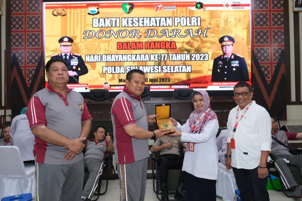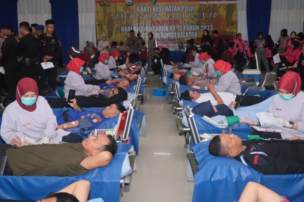 Kabidhumas Polda Sulsel Kombes Pol Komang Suartana dalam keterangan tertulisnya mengatakan Kegiatan Donor darah ini merupakan salah satu rangkaian dalam menyambut Hari Bhayangkara ke-77.