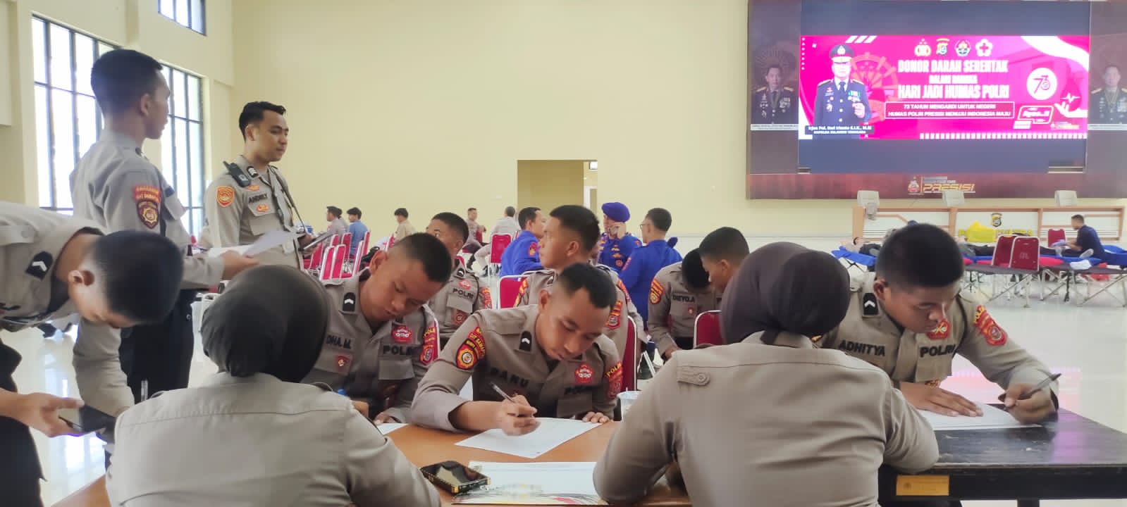 Fajarinfoonline.com,’Dalam rangka memperingati Hari Jadi Humas Polri ke-73, Bidang Humas Polda Sulawesi Tenggara (Sultra) menggelar kegiatan donor darah serentak bertajuk “Mengabdi untuk Negeri: Humas Polri Presisi Menuju Indonesia Maju.” Donor darah ini berlangsung di Aula Dharana Lastarya Polda Sultra pada Selasa, 29 Oktober 2024, dan diikuti oleh ratusan personel kepolisian yang antusias mendonorkan darah mereka untuk membantu masyarakat yang membutuhkan.
