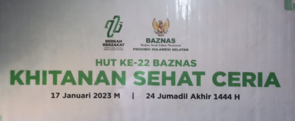 Fajarinfoonline.com,” Makassar – Dalam rangka Ulang tahun yang ke 22, Badan Amil Zakat Nasional menggelar khitanan gratis dengan tema ” Khitanan Sehat Ceria”, yang di adakan di kantor Baznas Provinsi Sulsel di jalan Masjid Raya Makassar, Selasa 17 Januari 2023 Masehi / 24 Jumadil Akhir 1444 Hijriah.