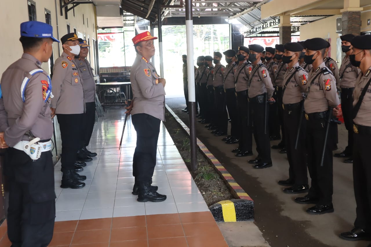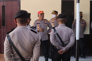 Kepala Sekolah Polisi Negara (SPN) Batua Polda Sulsel, Kombes Pol Joko Pitoyo, S.Sos di dampingi oleh Kapolres Takalar AKBP Gotam Hidayat, S.I.K., M.Si., bersama PJU Polres Takalar melakukan pengecekan 49 orang Siswa Diktuba yang Sedang melaksanakan Latihan Kerja di Polres Takalar, Jumat (17/6/2022) sore.