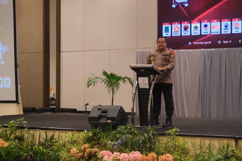 Irjen Pol Drs. Setyo Boedi Moempoeni Harso, S.H., M.Hum menyampaikan Deklarasi Pemilu damai ini merupakan bentuk komitmen bagi kita bersama untuk menjaga dan memelihara kedamaian dalam pelaksanaan Pemilu Yang akan datang.