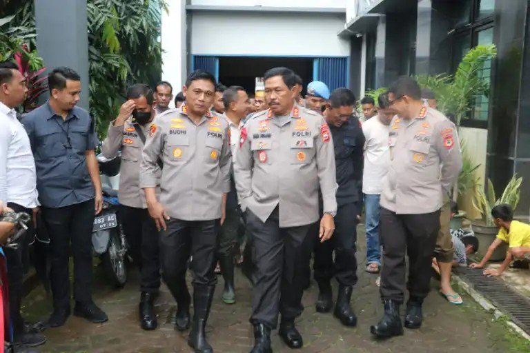 Kapolda Sulsel, Irjen. Pol. Nana Sudjana mengunjungi warga yang mengungsi akibat banjir di Kampus Universitas Terbuka, Jalan Monginsidi Baru, Makassar, Senin (13/2/23). Mereka yang mengungsi mulai dari anak-anak hingga dewasa, bahkan ada pula yang lansia.
