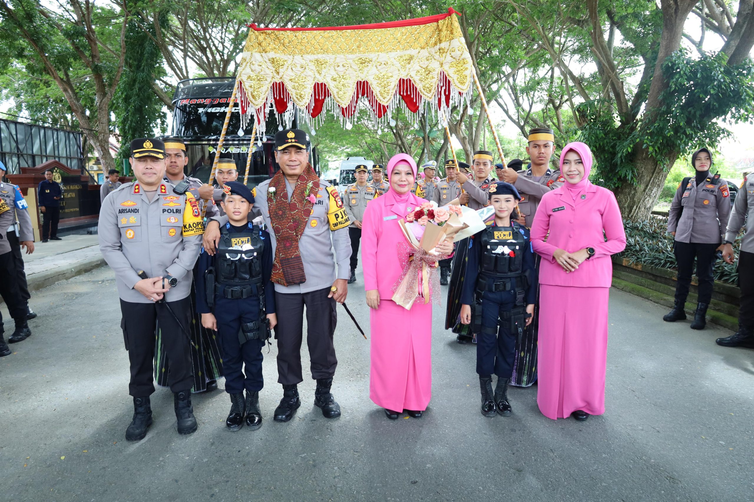 Fajarinfoonline.com,”Kapolda Sulawesi Selatan, Irjen Pol. Yudhiawan S.H., S.I.K., M.H., M.Si., didampingi Ketua Bhayangkari Daerah Sulsel Ny. Yunita Yudhiawan melaksanakan kunjungan di Polres Luwu pada Selasa (04/02/25). Kedatangan Kapolda Sulsel disambut dengan upacara adat berupa pengalungan Salempang sarung oleh Kapolres Luwu AKBP Arisandi, S.H., S.I.K., M.Si, serta pemberian buket bunga kepada Ny. Yunita Yudhiawan oleh Ketua Bhayangkari Cabang Luwu Ny. Rise Arisandi . Acara dilanjutkan dengan Jajar Kehormatan yang dilakukan oleh personel Polres Luwu.