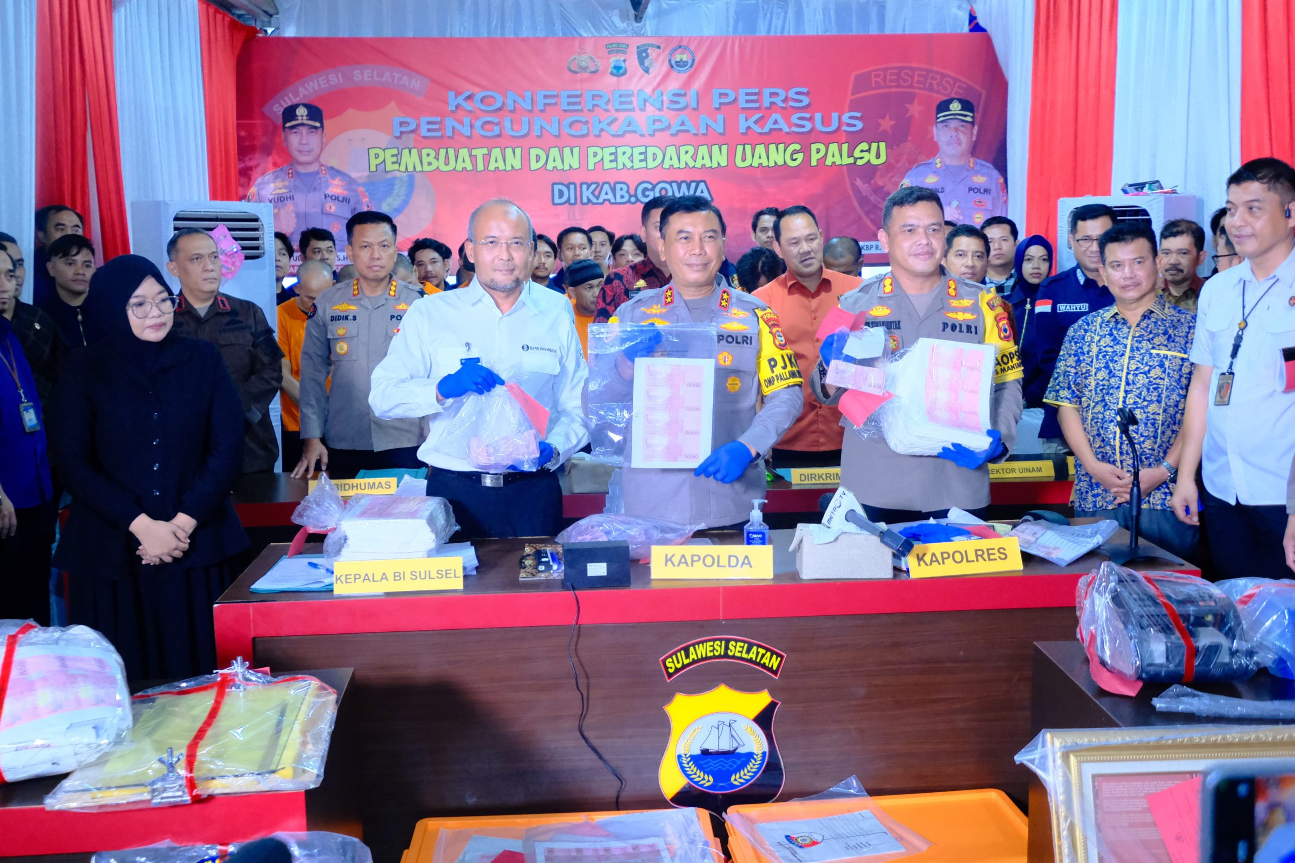 Dalam Press Release tersebut, Kapolda Sulsel mengungkapkan bahwa pihak kepolisian telah berhasil mengungkap sindikat peredaran uang palsu yang beroperasi di wilayah hukum Polres Gowa. Modus operandi yang digunakan oleh para pelaku adalah dengan menyiapkan peralatan cetak, pelat cetak, serta uang palsu yang mereka buat dan edarkan. Sebanyak 17 orang tersangka berhasil diamankan, sementara 2 orang saksi masih dalam tahap pemeriksaan.