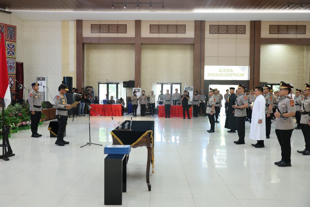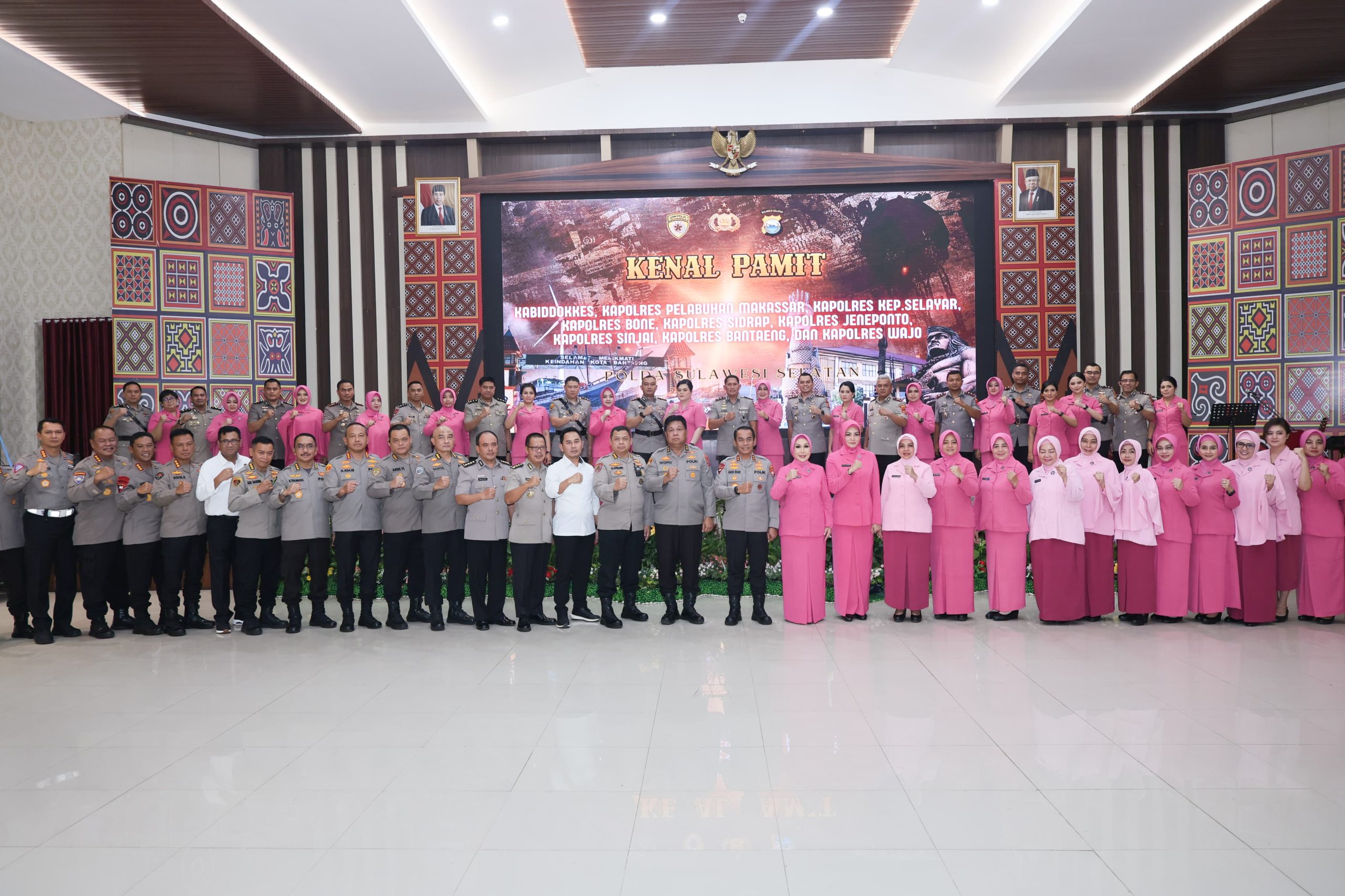 Fajarinfoonline.com,’Kapolda Sulawesi Selatan Irjen Pol Andi Rian R Djajadi, S.I.K., M.H. didampingi Ketua Bhayangkari Daerah Sulsel Ny. Dewwy Andi Rian Memimpin Langsung Serah Terima Jabatan dan Kenal Pamit Pejabat Utama dan Kapolres Jajaran Polda Sulsel di Aula Mappaodang Polda Sulsel, Senin (08/07/24).