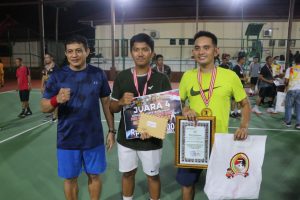 Sementara pada nomor Tennis Lapangan Ganda Perorangan Juara 1 dimenangkan Bagas dan Rindosa, menyusul Juara 2 Rahmat dan Alamsyah, kemudian Juara 3 Jupri dan Yusran, sementara Juara 4 Rizki dan Akbar.