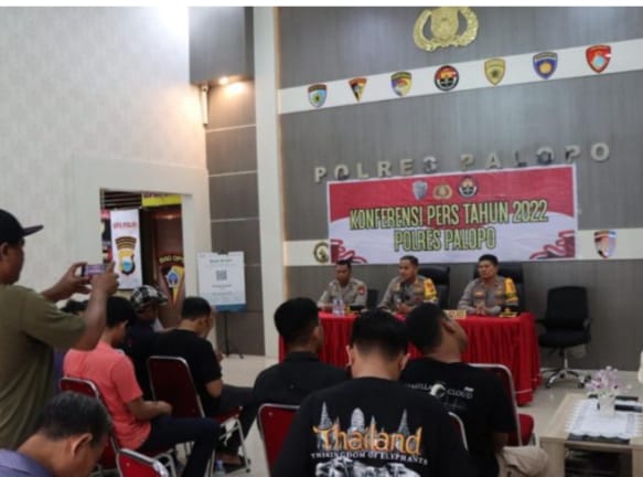 Fajarinfoonline.com,” Polres Palopo gelar kegiatan Prees Release akhir tahun 2022 di Ruang Lobi Polres Palopo , Sabtu , 31/12/2022.