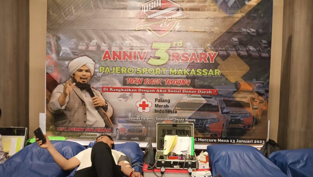 Kegiatan donor darah ini mewarnai dan mengawali annivesary pajero sport Makassar yang ke 3 tahun, serta melibatkan seluruh anggota pajero sport Makassar, karyawan hotel Mercure, dan dibuka untuk umum.
