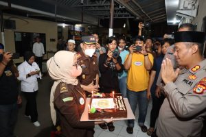 fajarinfo@online.com,”Ada kejutan di hari Bhayangkara Ke-76 tahun ini, pasalnya sebagai mitra dan sekaligus tetangga di Polres Takalar, Kejaksaan Negeri (Kejari) Kabupaten Takalar, menjelang pelaksanaan kegiatan doa bersama secara Virtual, tiba-tiba pegawai Kejari yang dipimpin langsung oleh Kajari Takalar Salahuddin, SH.MH, datang dengan membawa spanduk ucapan Selamat Hari Bhayangkara dan kue ulang tahun. Jum’at, 01/07/2022 malam