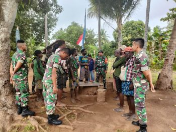 fajarinfo@online.com,”Merauke, -Menjelang pelaksanaan peringatan Hari Ulang Tahun ke-77 Republik Indonesia, Satgas Pamtas RI-PNG Yonif 123/RW Pos Kondo bersama seluruh Aparat kampung dan masyarakat kampung Kondo melaksanakan Kerja Bakti, Senin (8/8/2022).