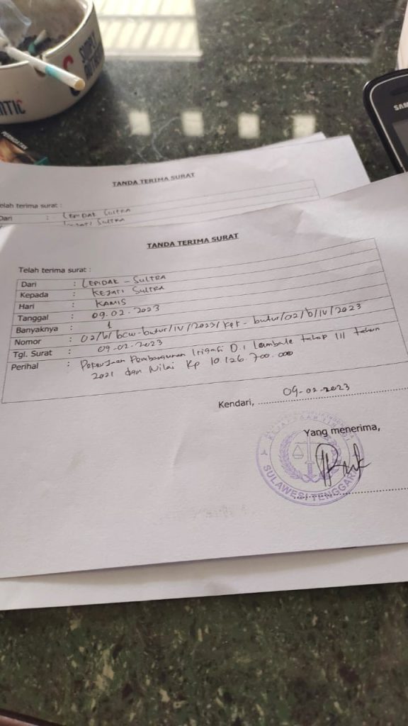 2). Dugaan penyalahgunaan Anggaran pekerjaan irigasi D.I Lambale Tahap III tahun anggaran 2021 dengan anggaran sebesar Rp. 10. 126. 700. 000 dugaan pekerjaan irigasi tersebut tidak bisa dimanfaatkan oleh para petani setempat;