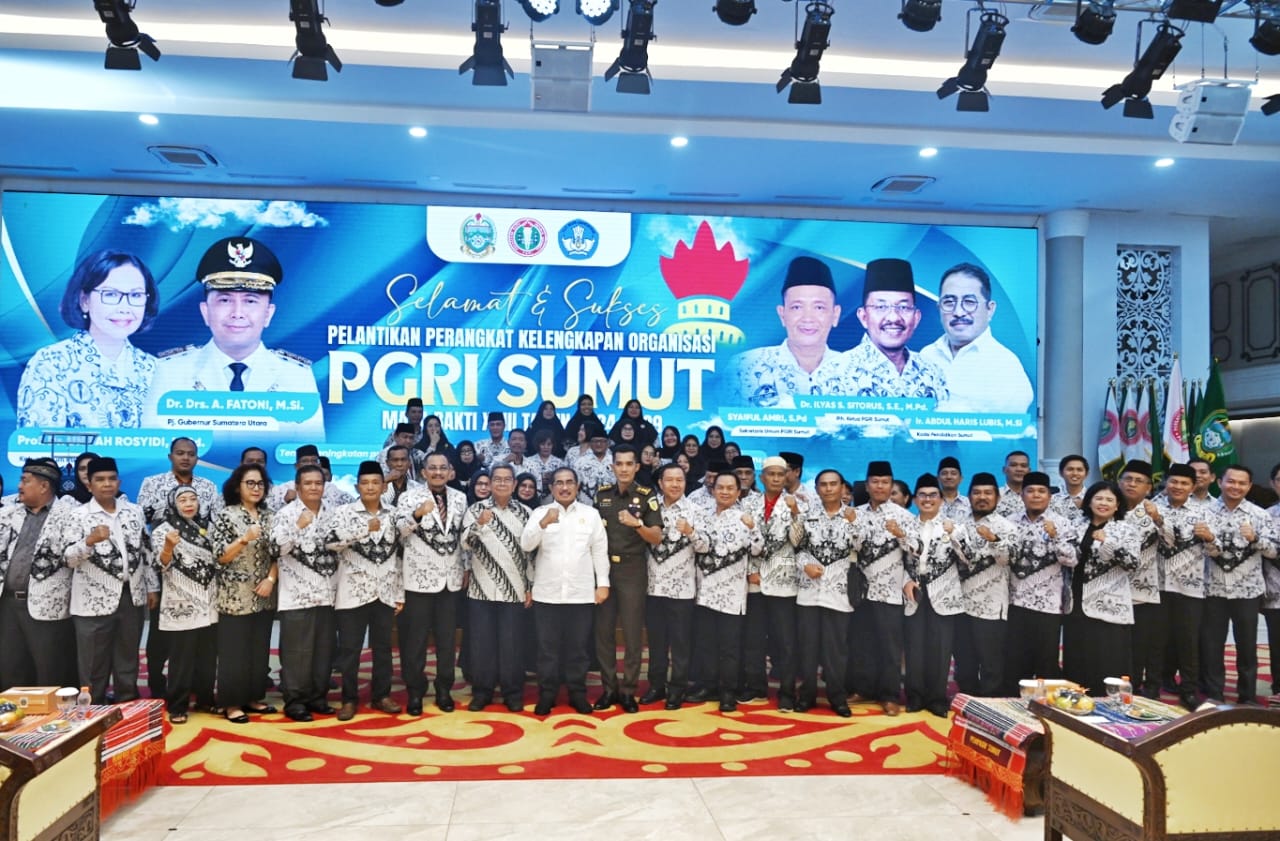 Fajarinfoonline.com,”MEDAN,- Kepala Dinas (Kadis) Komunikasi dan Informatika (Kominfo) Sumatera Utara (Sumut) Ilyas Sitorus sekaligus Pelaksana Harian Ketua Persatuan Guru Republik Indonesia (PGRI) Sumut melantik perangkat kelengkapan organisasi PGRI Sumut masa bakti XXIII Tahun 2024-2029.
