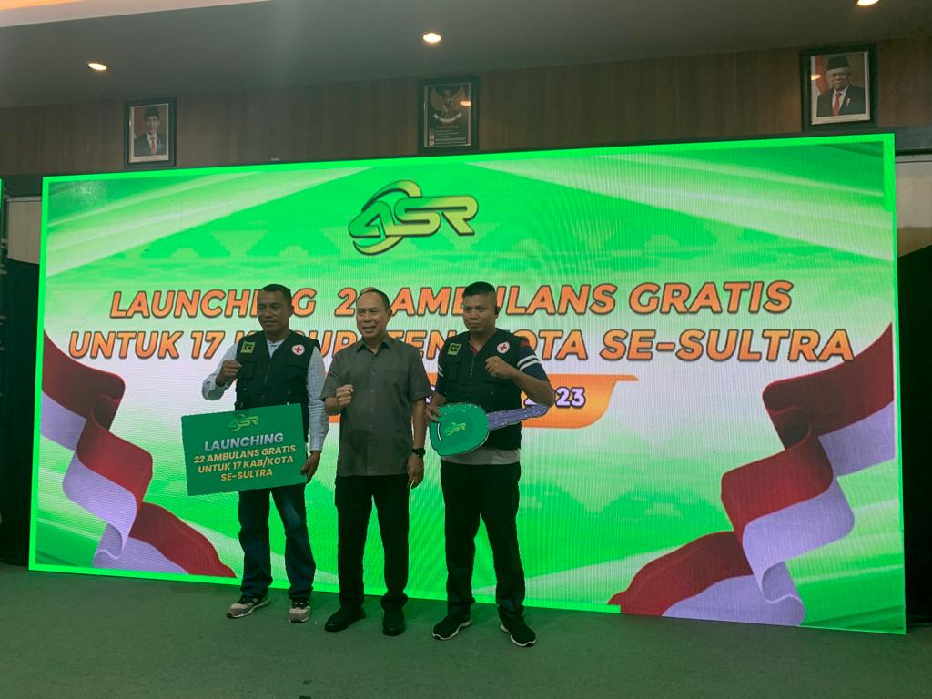 Fajarinfoonline.com,”Kendari – Mayor Jenderal TNI Purnawirawan Andi Sumangerukka, S.E., M.M. secara simbolis menyerahkan 22 unit kendaraan ambulans untuk masyarakat Sulawesi Tenggara (Sultra). Hal itu ditandai dengan digelarnya launching 22 ambulans gratis untuk 17 kota dan kabupaten yang bertempat di salasatu hotel di Kota Kendari, Sultra. Kamis (17/08/2023).