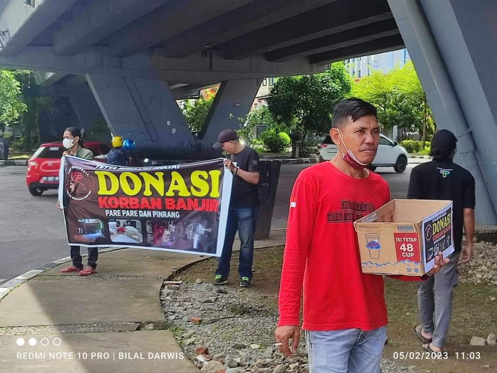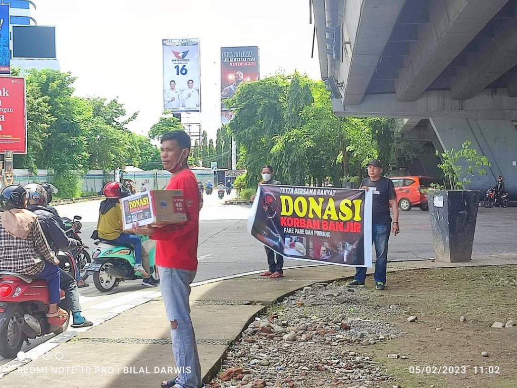 Keluarga besar Tetta Bersama Rakyat.(TBR) Turun kejalan untuk mengumpulkan donasi bagi warga yang kena dampak banjir yang terjadi baru.baru ini di Pare-Pare dan Pinrang Sulawesi Selatan