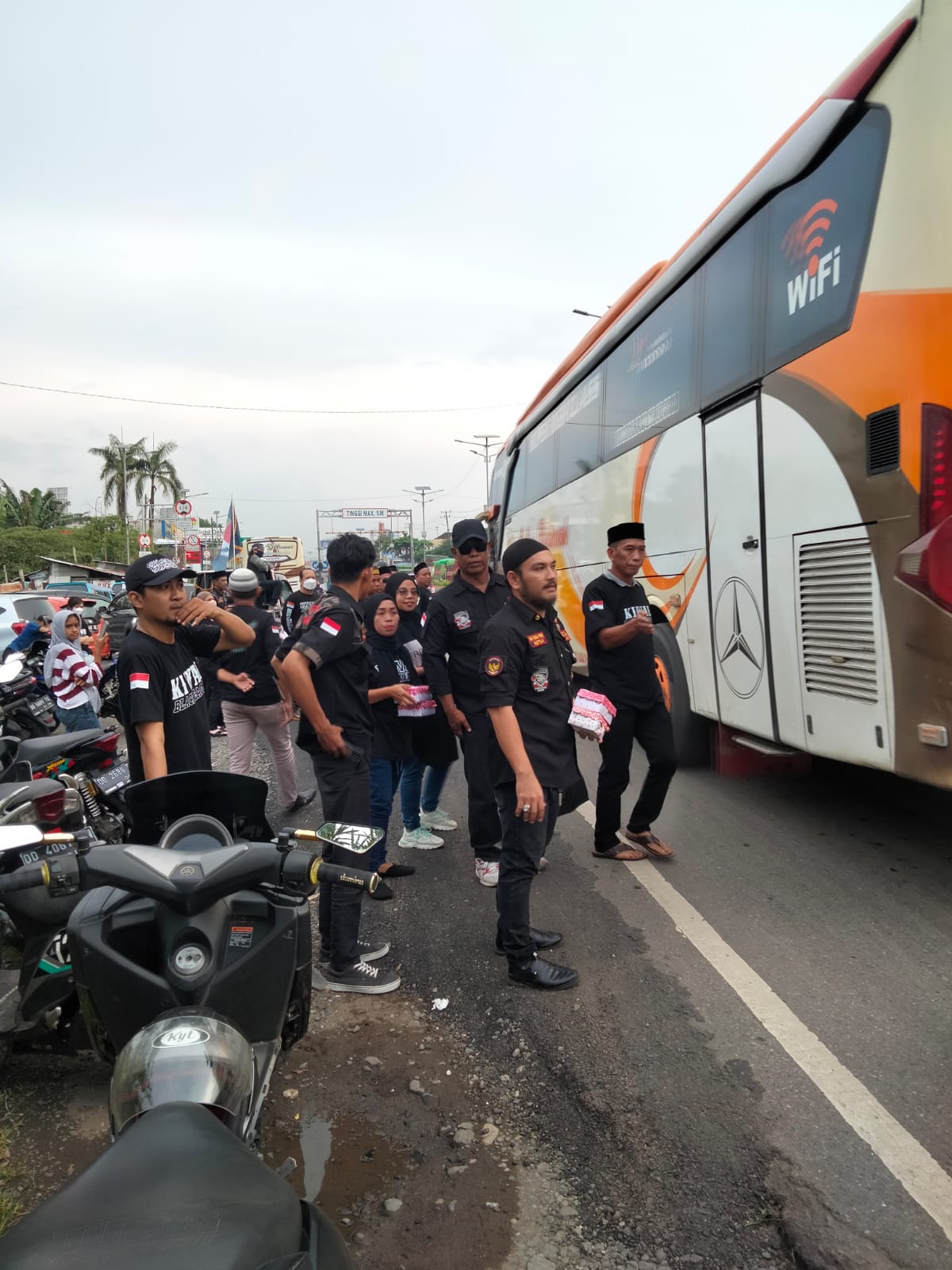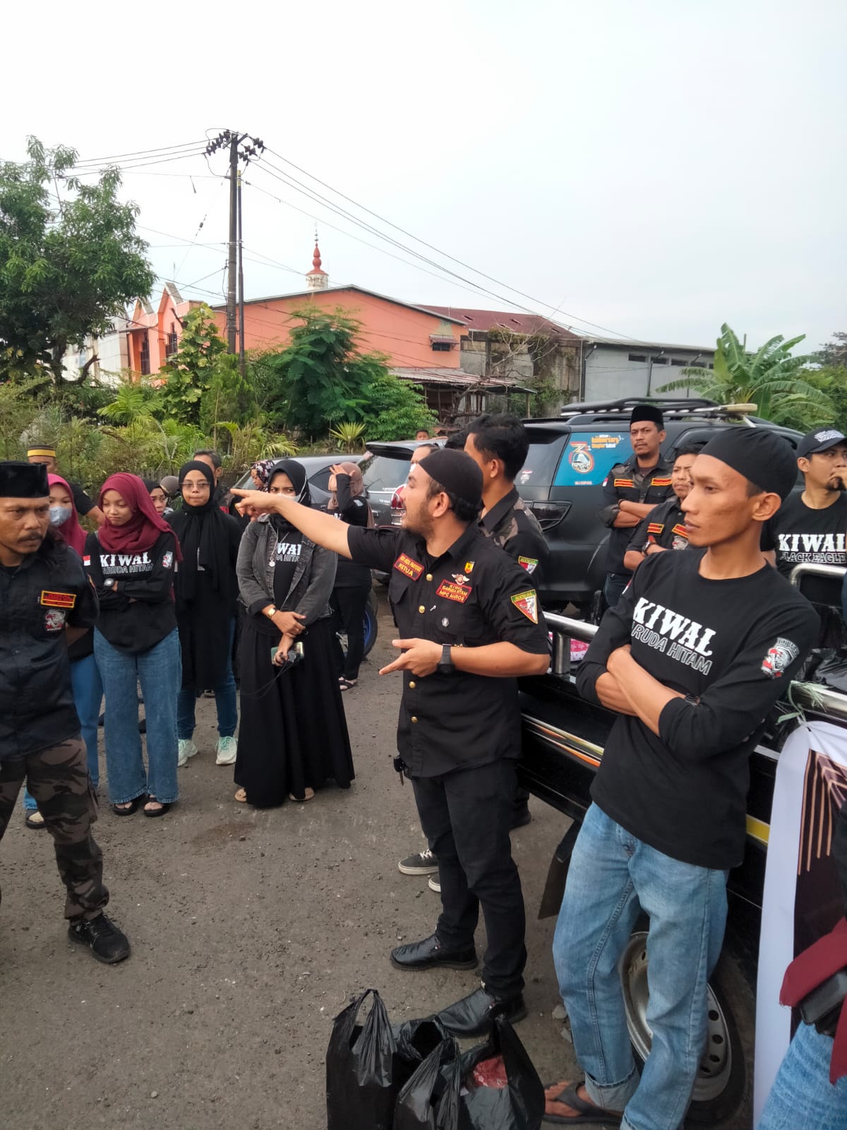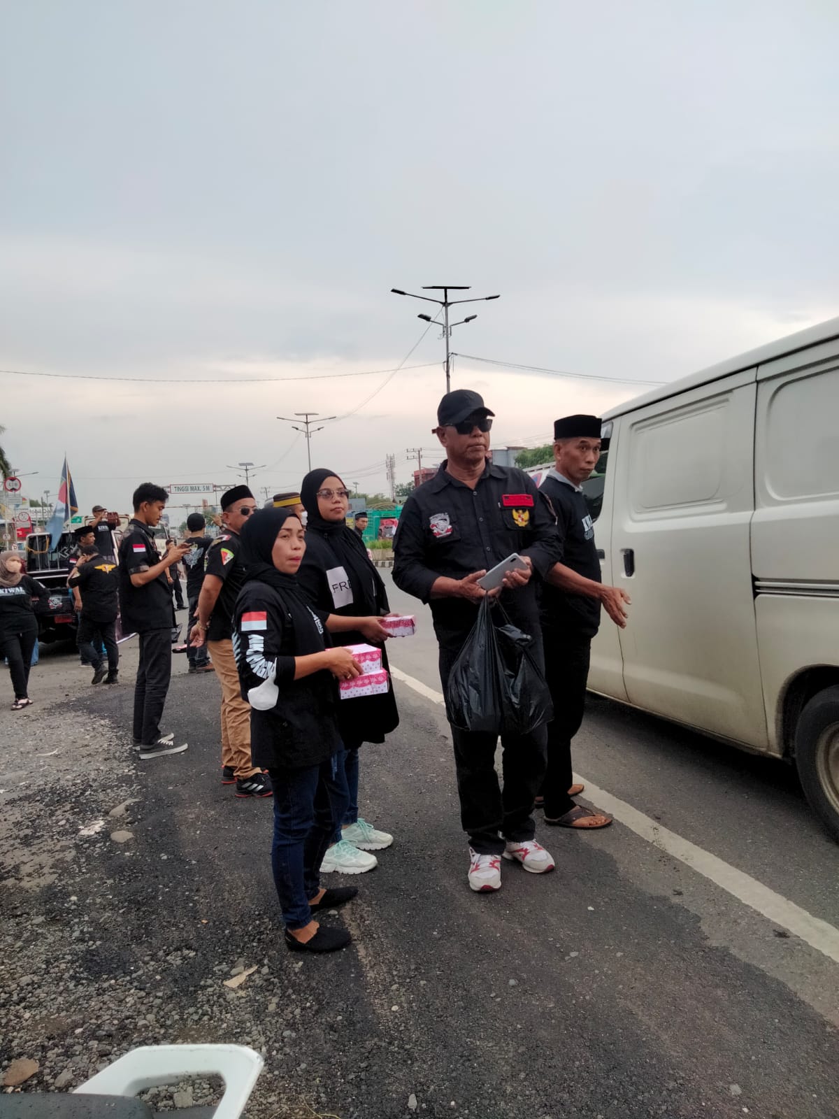 Ormas Kiwal Garuda Hitam, serta beberapa orang Bodiguardnya yang berbadan kekar, berdiri di pinggir jalan, tak lain untuk membagikan takjil secara gratis kepada masyarakat yang melintas dijalan tersebut.