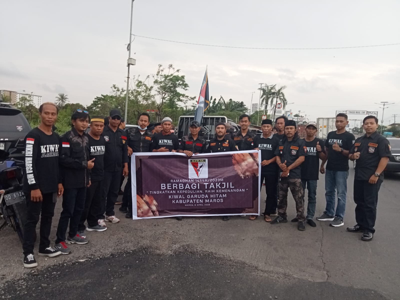 Demikian halnya yang dilakukan Ketua MPC Kiwal Garuda Hitam Kabupaten Maros Arizal Prayogo yang biasa di panggil daeng Ical , bersama Grew di Jalan Poros Makassar Maros tepatnya di Simpang Lima Bandara Sultan Hasanuddin , Sabtu, 8/04/2023.