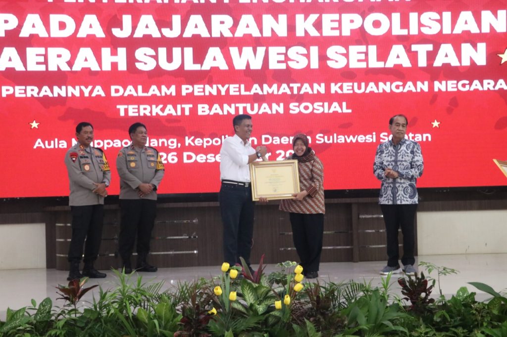 Penghargaan diberikan di Aula Mappaoddang Polda Sulawesi Selatan di Jl. Perintis Kemerdekaan, Kec. Biringkanaya, Makassar, Provinsi Sulawesi Selatan. Senin, (26/12/22)