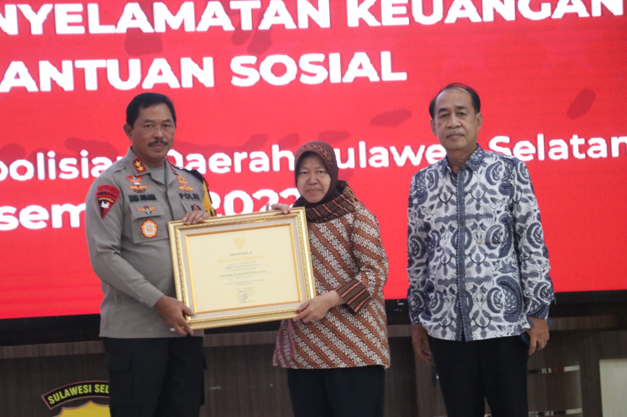 Fajarinfoonline.com,” Menteri Sosial RI Tri Rismaharini memberikan penghargaan kepada Kapolda Sulsel, Wakapolda Sulsel, Dirreskrimsus beserta jajaran khususnya Direktorat Reserse Kriminal Khusus (Ditreskrimsus) Subdit Tindak Pidana Korupsi (Tipidkor) Polda Sulawesi Selatan atas perannya dalam penyelamatan keuangan negara terkait Korupsi Penyaluran Bantuan Pangan Non Tunai (BPNT) Covid-19 Tahun Anggaran 2020.