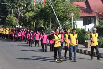 Kegiatan diawali dengan apel persiapan, dilanjutkan dengan jalan santai bersama kemudian senam kebugaran bersama di lapangan Apel Polres dan juga kegiatan Doorpize dengan berbagai hadiah menarik, yang membuat suasana kegiatan berjalan meriah dengan dukungan semangat dan antusias dari peserta yang hadir.