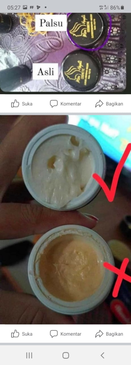 Jangan nanti, setelah ada efek negatif dari hasil pemakaian kosmetik dan langsung memvonis merk atau produk tersebut tanpa meneliti dulu apakah kosmetik yang digunakan adalah produk asli.tutupnya