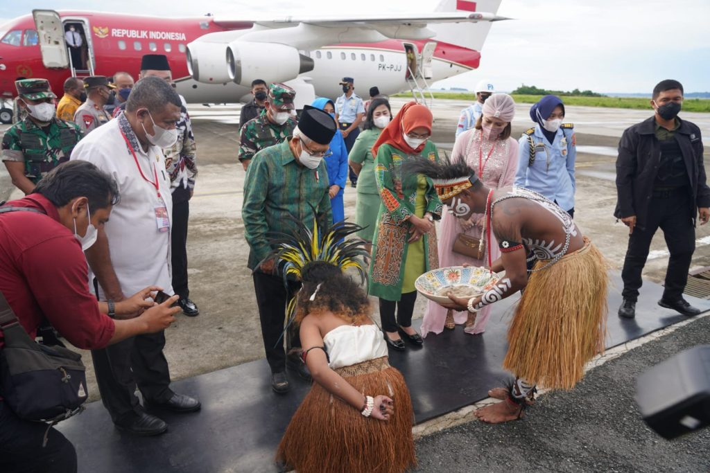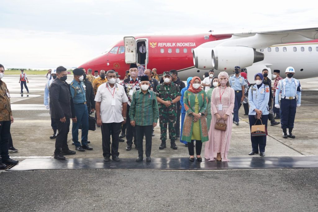 Diiringi rintikan hujan, menggunakan Pesawat Khusus Kepresidenan Bae-RJ 85, Wapres beserta Ibu Hj. Wury Ma’ruf Amin dan rombongan lepas landas dari Bandar Udara Internasional Mozes Kilangin Timika, Kabupaten Mimika, Papua Tengah menuju Bandar Udara Utarom Kaimana, Papua Barat, pada pukul 16.00 WIT.