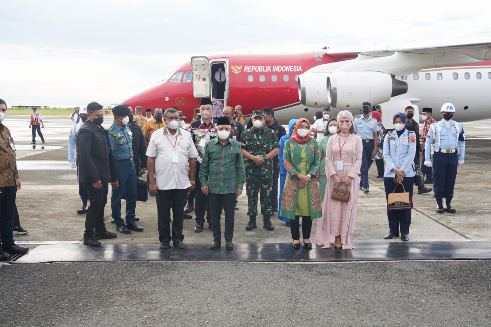 Diiringi rintikan hujan, menggunakan Pesawat Khusus Kepresidenan Bae-RJ 85, Wapres beserta Ibu Hj. Wury Ma’ruf Amin dan rombongan lepas landas dari Bandar Udara Internasional Mozes Kilangin Timika, Kabupaten Mimika, Papua Tengah menuju Bandar Udara Utarom Kaimana, Papua Barat, pada pukul 16.00 WIT.