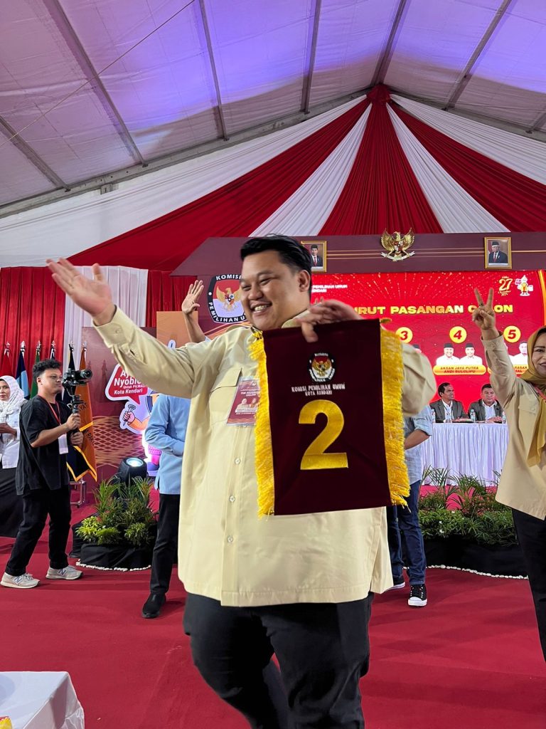 Melalui rapat pleno Pengundian nomor urut di KPU Kota Kendari, pasangan calon (paslon) dalam Pemilihan Walikota Kendari resmi diumumkan pasangan Yudhianto -Nirna mendapat nomor urut 2 (dua) pada Senin (23/9/2024).