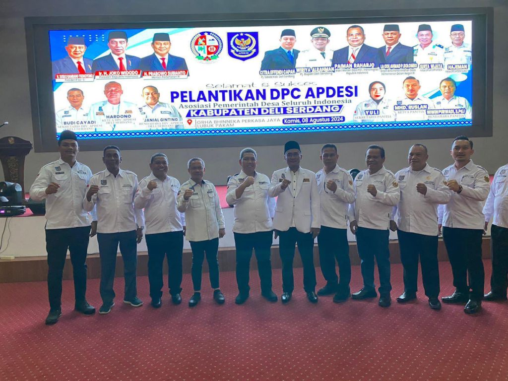 Fajarinfoonline.com,’ Deli Serdang,- Pelantikan Asosiasi Kepala Desa Seluruh Indonesia (APDESI) Deli Serdang Hardono siap kawal pembangunan Desa tertinggal dihadiri oleh Wakil Menteri Desa Pembangunan Daerah Tertinggal Dan Transmigrasi Republik Indonesia Prof.Dr.H.Paiman Raharjo,M.Si. tepatnya di Graha Perkasa Jaya Sebrang Depan Kantor Bupati Deli Serdang Kamis (08/08/2024).