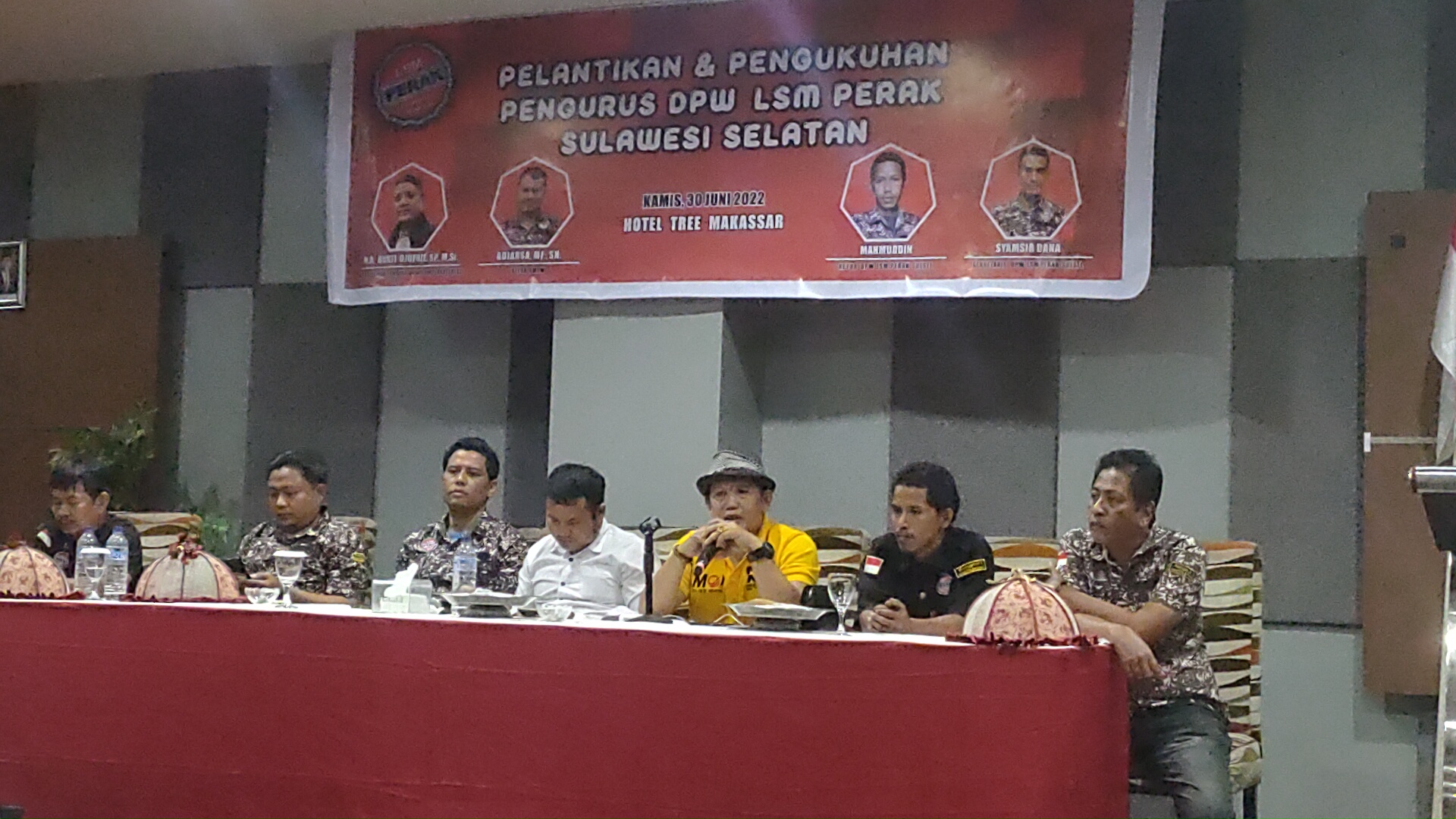 Pelantikan Pengurus LSM PERAK Dewan Pimpinan Wilayah Provisi Sulawesi Selatan dipimpin langsung oleh Ketua Umum dari DPP LSM PERAK Indonesia, dan dihadiri oleh semua pengurus.