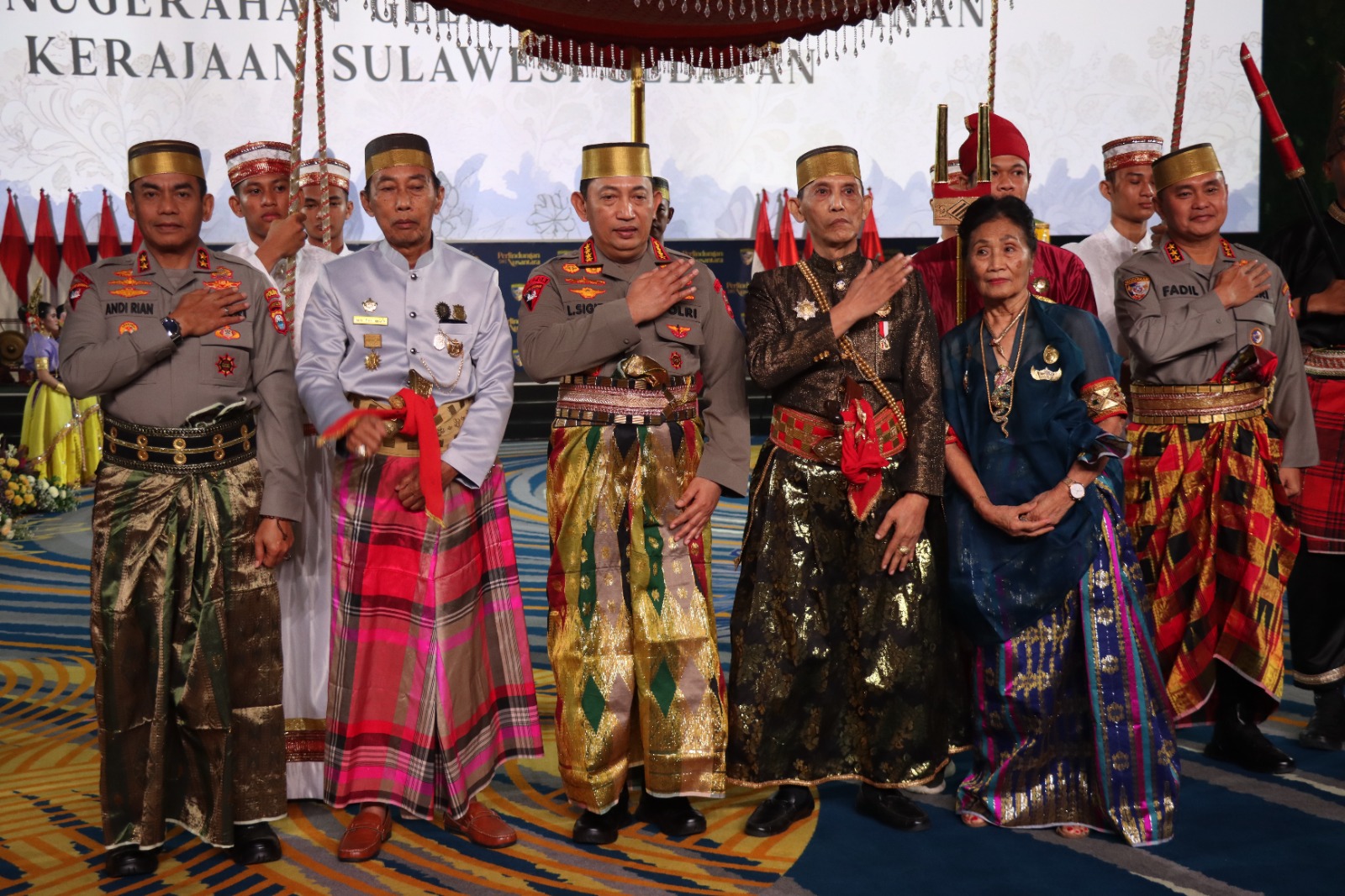 Pusaka Luwu Sapukala La Sumange’ Getteng yang artinya semangat yang tegas dan konsisten dalam menegakkan keadilan dan kebenaran.Prosesi penyerahan gelar ditandai dengan pembacaan narasi oleh MC, pembacaan SK penganugerahan gelar kebangsawanan, serta pemberian gelar kebangsawanan dan simbolik kerajaan kepada Kapolri. Acara ini ditutup dengan foto bersama dan penyerahan penghargaan dari Kapolri kepada kepala daerah, diikuti dengan foto bersama penerima penghargaan.Kapolda Sulsel dalam sambutannya menekankan pentingnya peran masyarakat dan infrastruktur dalam menurunkan tingkat kriminalitas, serta pentingnya pendidikan dan pelatihan bagi profesionalisme Polri. Ia juga menyoroti pentingnya sinergi dan solidaritas dalam menghadapi tantangan di masa depan.Acara ini dihadiri oleh para pejabat utama Mabes Polri, Kapolda dari berbagai daerah, Forkopimda Provinsi Sulsel, rektor universitas se-Sulsel, serta tokoh adat dan masyarakat yang turut menyaksikan momen bersejarah ini.