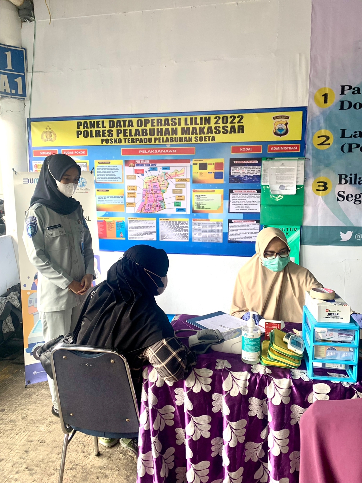 Fajarinfoonline.com – PT Jasa Raharja Cabang Sulsel menyediakan layanan pemeriksaan kesehatan gratis bagi masyarakat yang akan pulang kampung dalam momen menjelang Natal dan Tahun Baru 2023 di Pelabuhan Soekarno Hatta Makassar. Pemeriksaan kesehatan gratis merupakan program yang rutin dilaksanakan, khususnya dalam momen-momen tertentu, contohnya seperti pada momen Nataru ini. Sasaran kegiatan ini yakni para penumpang angkutan umum yang hendak pulang ke kampung halaman serta para petugas yang siaga di masa arus mudik dan balik ini. Giat H+2 Natal 2022 dan H-5 Tahun Baru 2023 kali ini dilaksanakan oleh Petugas Jasa Raharja Cabang Sulawesi Selatan, Nurul Fatimah.