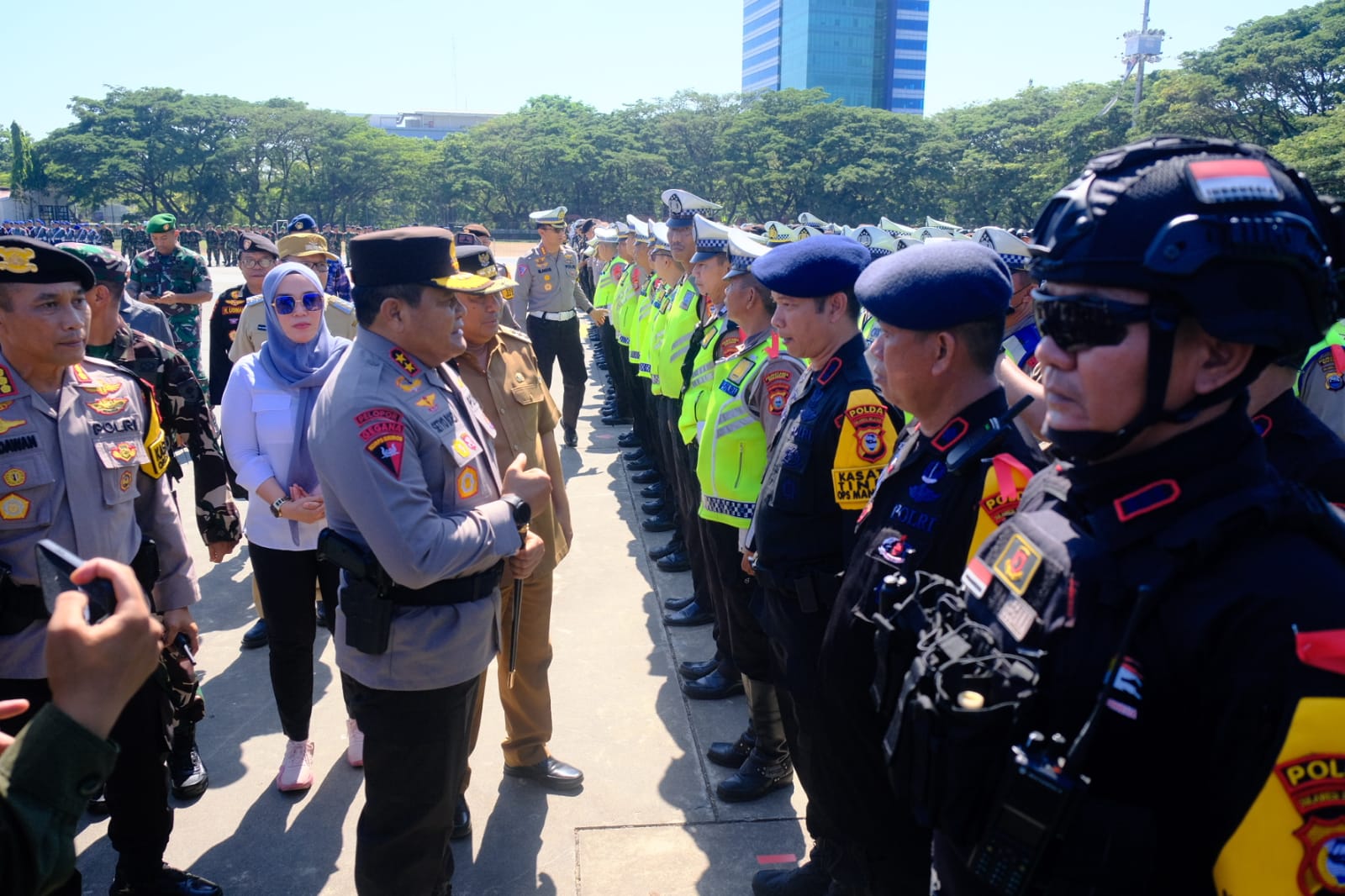 Apel pasukan gabungan ini dipimpin langsung oleh Kapolda Sulsel Irjen Pol Drs. Setyo Boedi Moempoeni Harso, S.H., M.Hum dan dihadiri juga oleh Penjabat (Pj) Gubernur Sulsel Bahtiar Baharuddin, Ketua DPRD Sulsel, Pejabat TNI, Walikota Makassar, dan Pejabat Instansi terkait serta para Kasatgas OMB