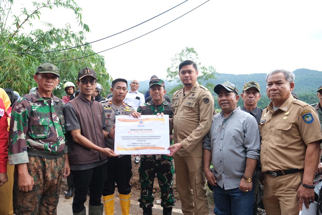 Pada kesempatan ini, Adnan didampingi Kepala Badan Penanggulangan Bencana Daerah (BPBD) Kabupaten Gowa, Iksan Parawansa juga menyerahkan bantuan dari BNPB. Bantuan sebesar Rp 250 juta ini untuk penanganan longsor dan operasional relawan selama di lokasi longsor.