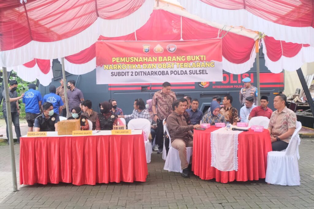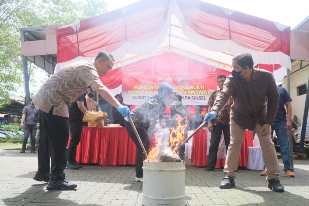 Pemusnahan dilakukan lgsg oleh DirNarkoba Polda Sulsel didampingi oleh Kasi Narkotika Kajati Sulsel dan Wadir Narkoba Polda Sulsel. Pemusnahan tersebut juga disaksikan langsung oleh para tersangka.