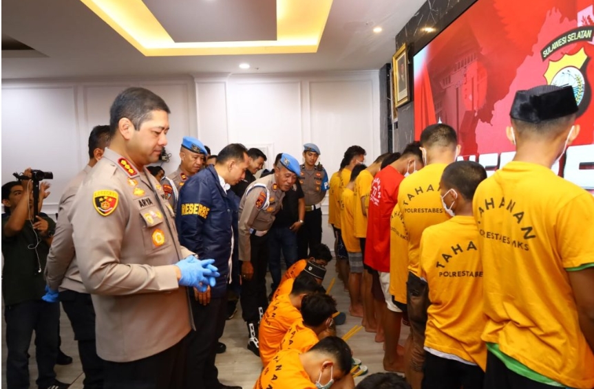 Dalam konferensi pers di Aula Mappaodang Polrestabes Makassar, hadir Kabid Humas Polda Sulsel Kombes Pol Didik Supranoto, Dir Krimum Polda Sulsel Kombes Pol Setiadi Sulaksono, Kapolrestabes Makassar Kombes Pol Arya Perdana, serta Kasat Reskrim Polrestabes Makassar Kompol Devi Sujana.