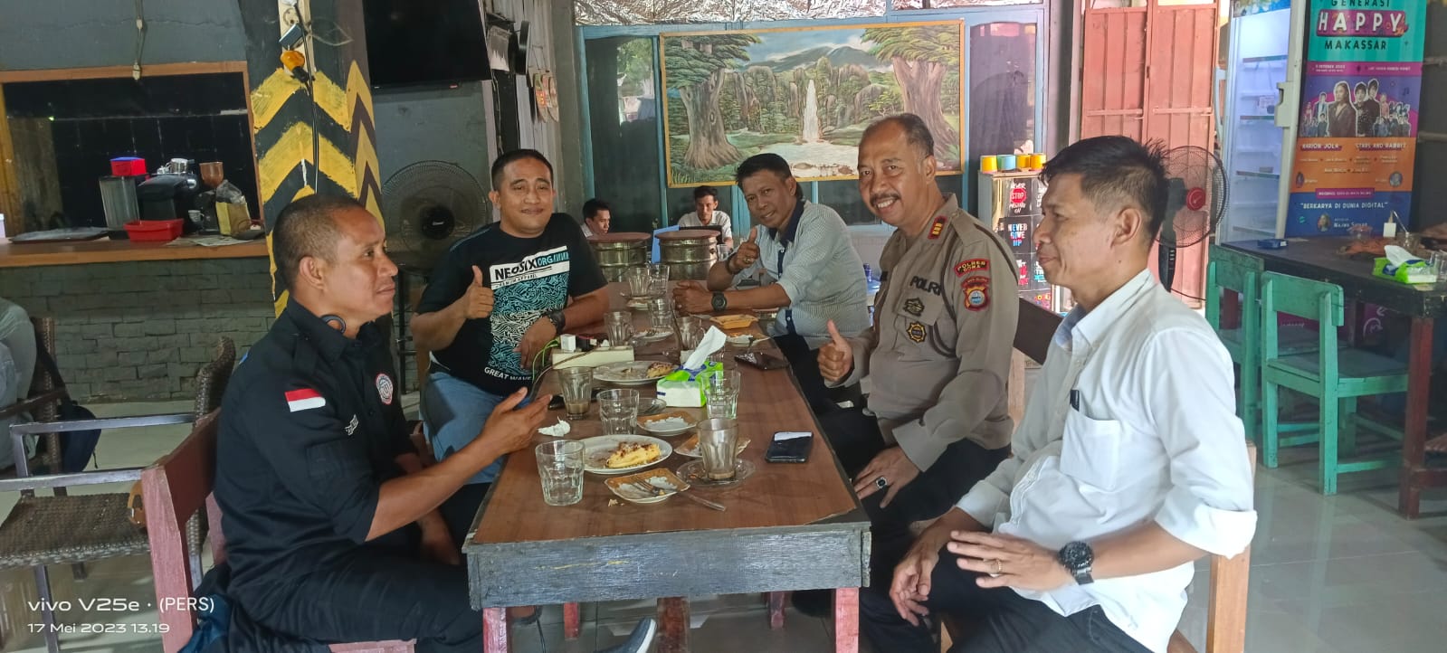 Dalam coffee Bareng tersebut,nampak Perwira tiga balok bersama awak media membahas berbagai persoalan yang terjadi di wilayah Kabupaten Gowa khususnya di Kec.Bajeng.